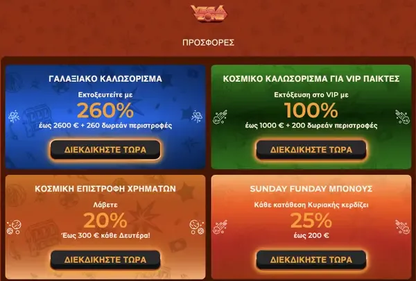 | Cosmic Cashback (EUR) | Εβδομαδιαίο cashback βάσει καθαρών απωλειών | Το ποσοστό και η επιλεξιμότητα εξαρτώνται από τους τρέχοντες κανόνες |